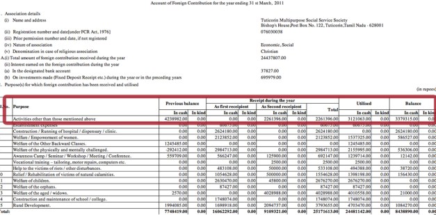 Similiarly, the other NGO, the Tuticorin Diocese Association, received 22 crores in the same period. And they too, do not have a website, or a statement.